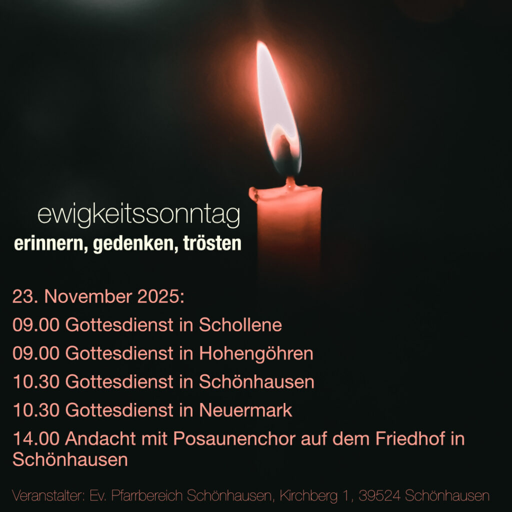 Am Ewigkeits- oder Totensonntag halten wir Gottesdienst: