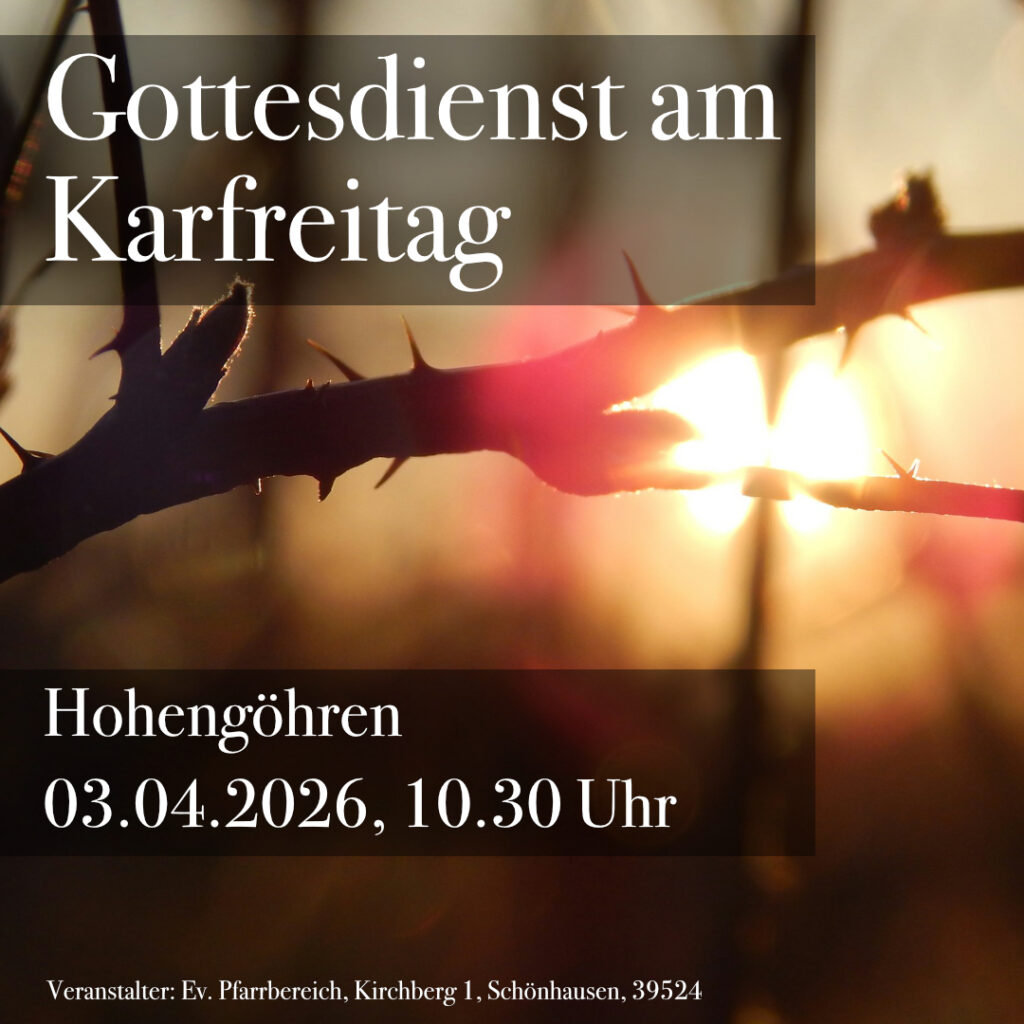 Der Karfreitag in Hohengöhren steht unter dem Eindruck der Todesstunde Jesu Christi. Der Gottesdienst beginnt um 10.30 Uhr.